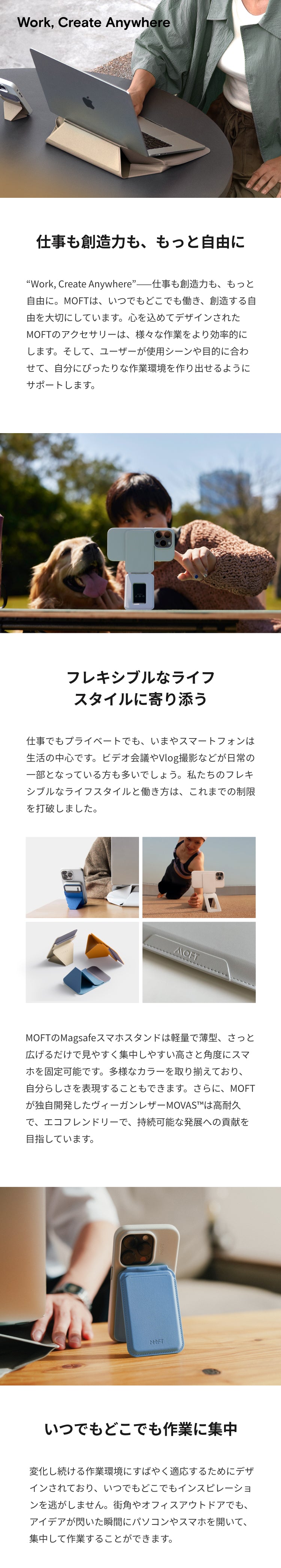 2019年、「見えない、感じない、気づかない」というデザイン哲学のもと、MOFTスタンドシリーズが誕生しました。 米国のKickstarterで多大な支援を集め、日本のMakuakeでも過去最高記録を樹立。 現在、世界中のモバイルワーカーに愛用されています。